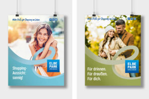 Das Kampagnendesign des ELBEPARKS verbindet moderne Ästhetik mit Natürlichkeit und Emotionalität. Frische Farben und organische Formen symbolisieren das vielfältige Angebot und die einladende Atmosphäre.